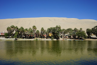 Pahalılık kısmına gelince… Market falan yok elbet, birkaç mahalle bakkalı insafsız ücretler karşılığında alışveriş hizmeti sunuyor. Baktık karnımızı doyurmak ederinin çok üstüne mal olacak, bir paket spagetti alıp kendin pişir, kendin ye seçeneğinde karar kıldık. Hostel’e gidince ortak mutfakta harıl harıl yemek hazırlayan kalabalık da aldığımız kararın doğruluğunu onaylıyordu. Hem keyifli zaman geçir, hem de ucuz yoldan karnını doyur. Üstelik hostel’ın teras manzarası da ayrı keyif.Huacachina, Ica şehrinde bulunan çölün ortasında bir vaha. Tıpkı masallardaki gibi. Uçsuz, bucaksız kum tepelerinin ortasında saklı bir cennet. 1940-50’li yıllarda Peru’nun zengin iş adamlarına tatillerini geçirdikleri, şehirden kaçıp sığındıkları bir sayfiye yeri olarak kullanılmış. Günümüze o dönemlerden yalnızca kapıları kilitli soyunma kabinleri kalmış.