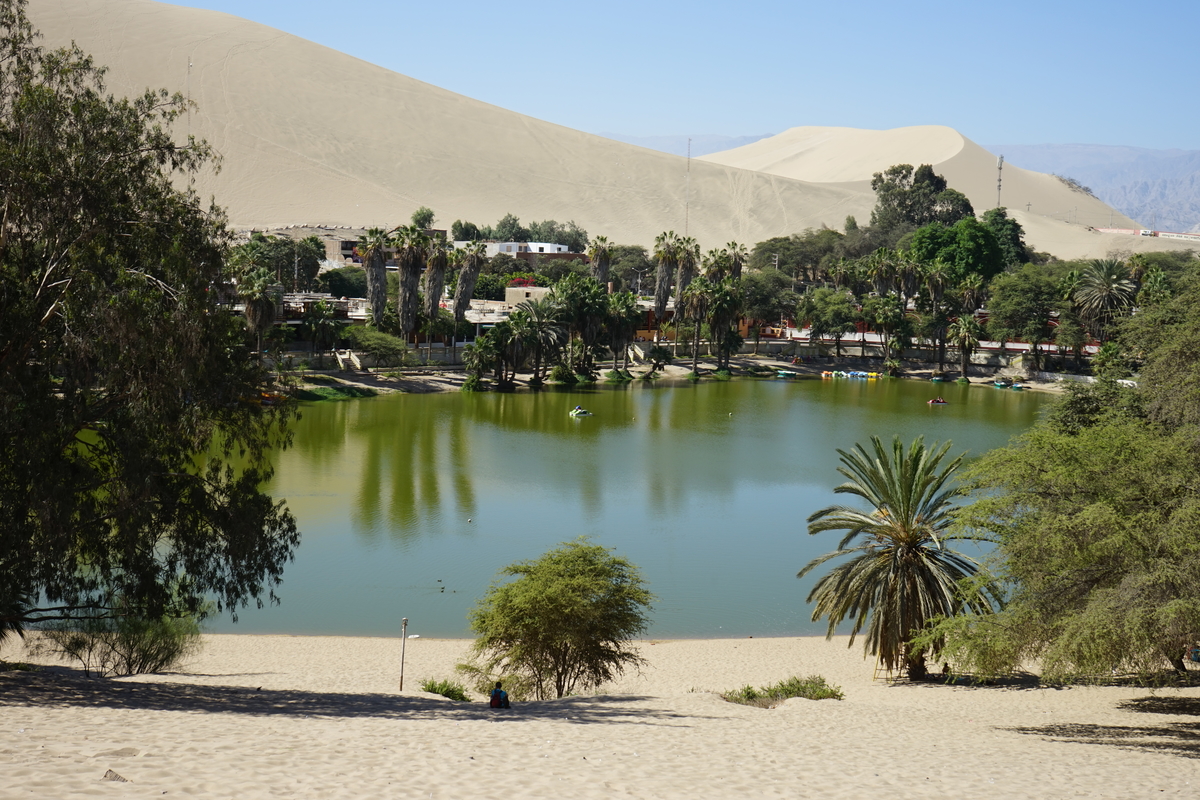 Huacachina, Ica şehrinde bulunan çölün ortasında bir vaha. Tıpkı masallardaki gibi. Uçsuz, bucaksız kum tepelerinin ortasında saklı bir cennet. 1940-50’li yıllarda Peru’nun zengin iş adamlarına tatillerini geçirdikleri, şehirden kaçıp sığındıkları bir sayfiye yeri olarak kullanılmış. Günümüze o dönemlerden yalnızca kapıları kilitli soyunma kabinleri kalmış.